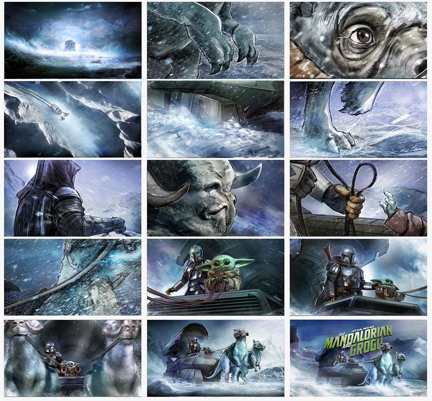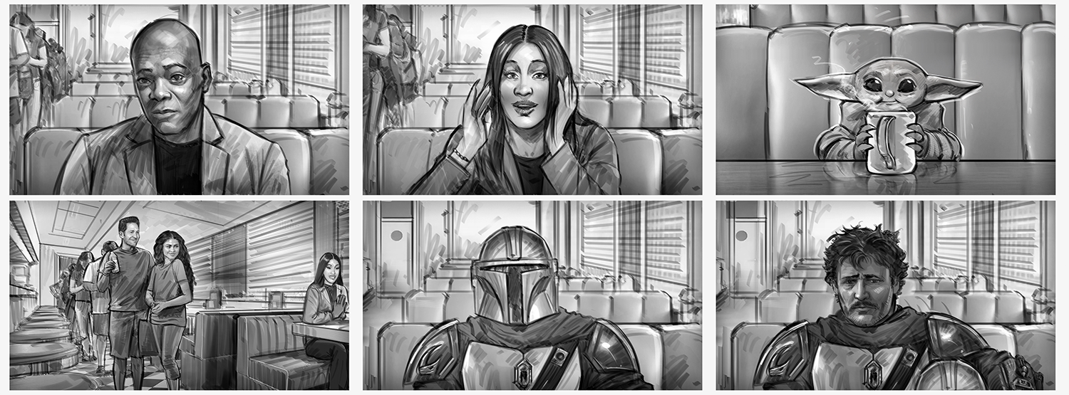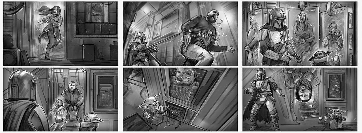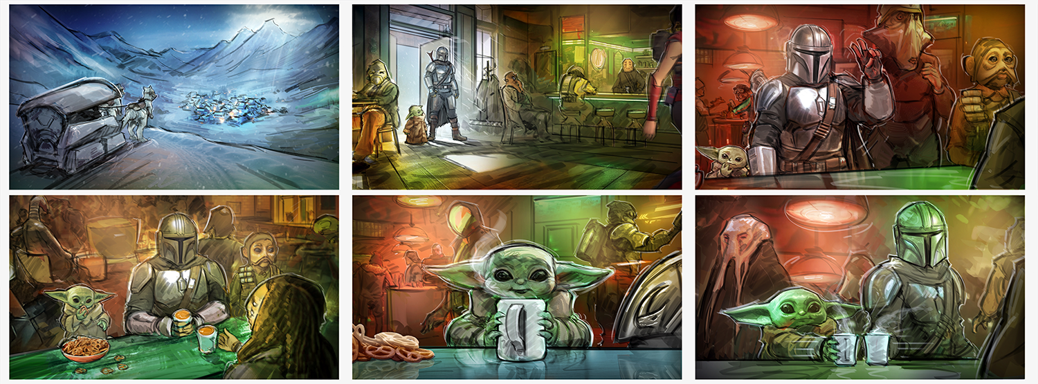 Star Wars: Mandalorian and Grogu. Initial Pitch and Pre-Pro visualization, ideation, and storyboard sequences for Lucasfilm Big Game Spot.