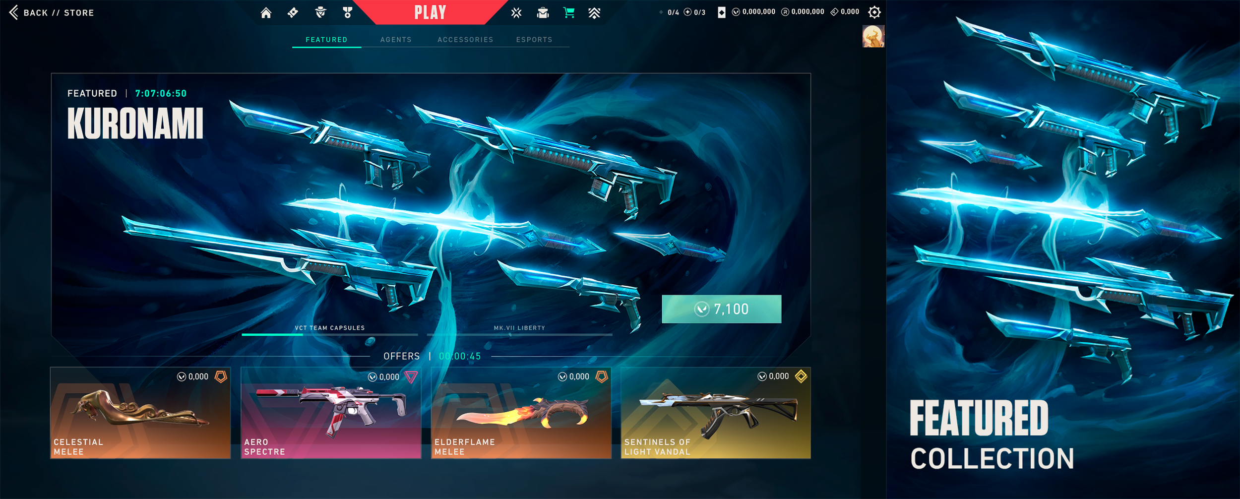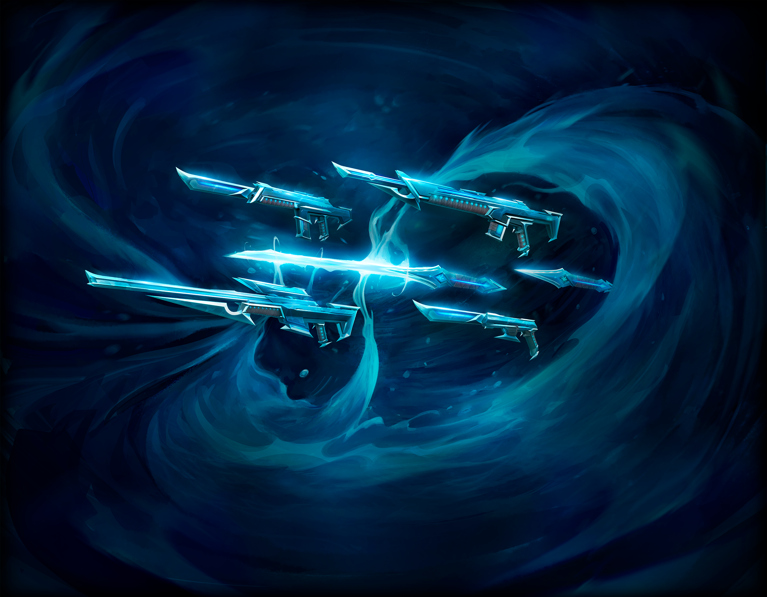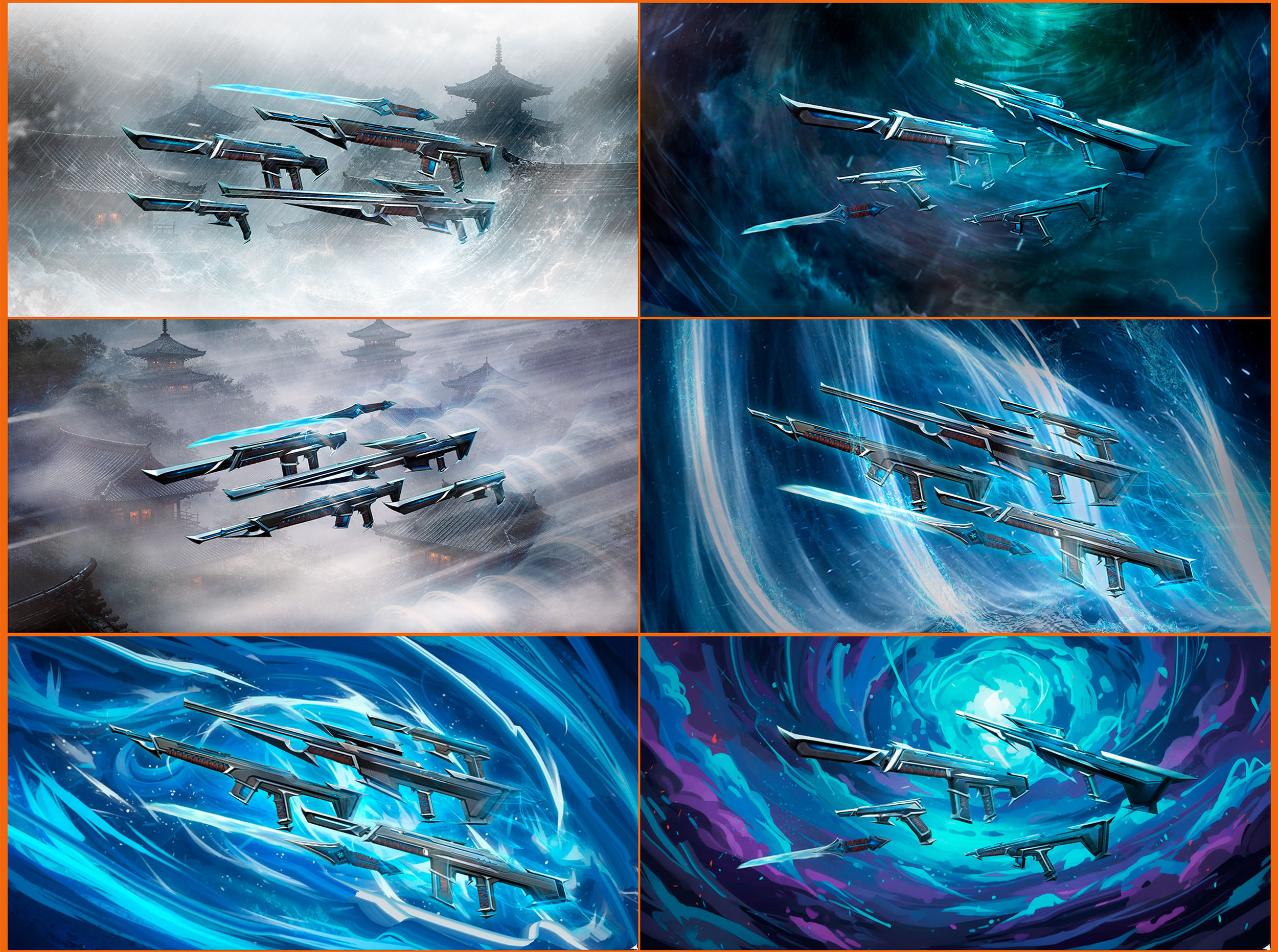 Designed and Illustrated key marketplace visual for Valorant “Kuronami” skinline. Base weapon models provided by Riot Games.